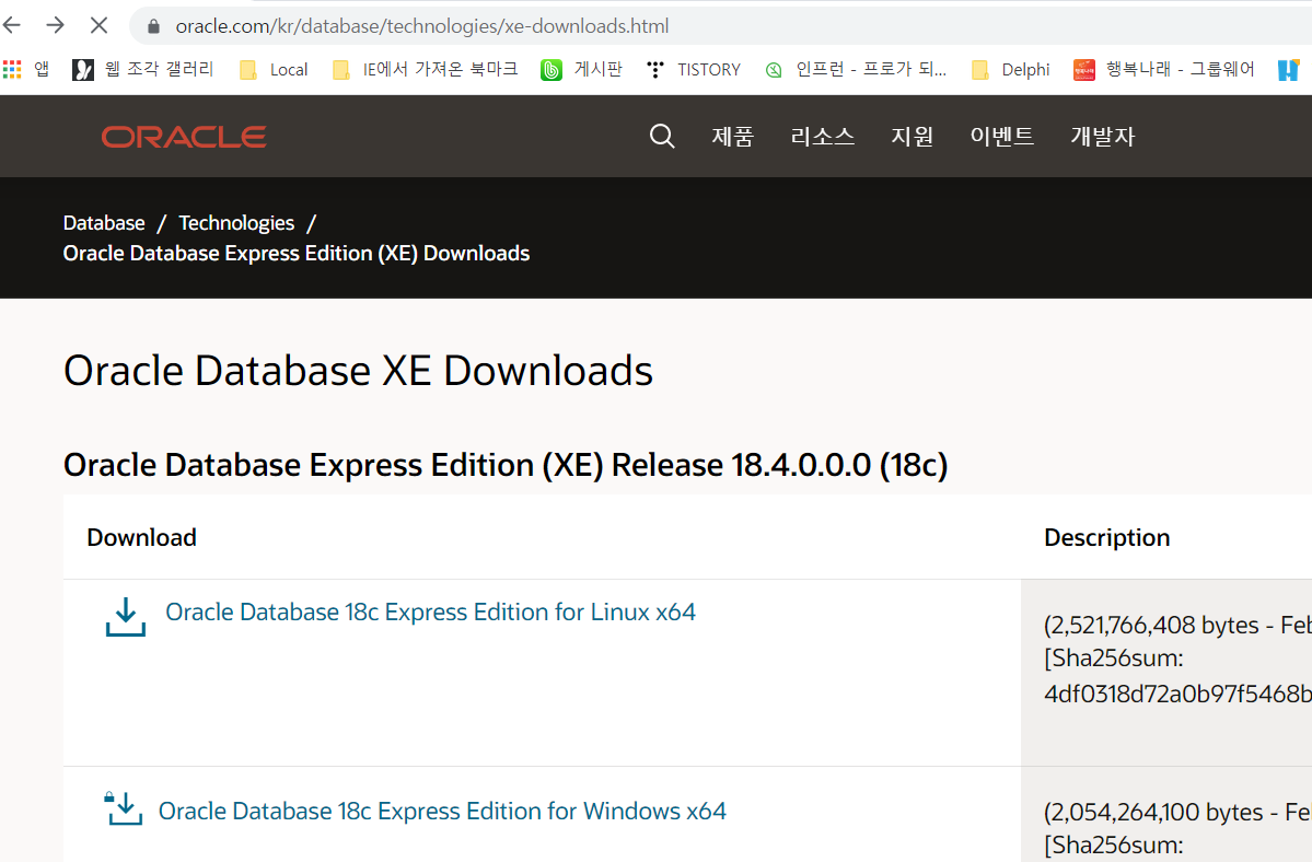 - Google : Oracle XE Download 검색
