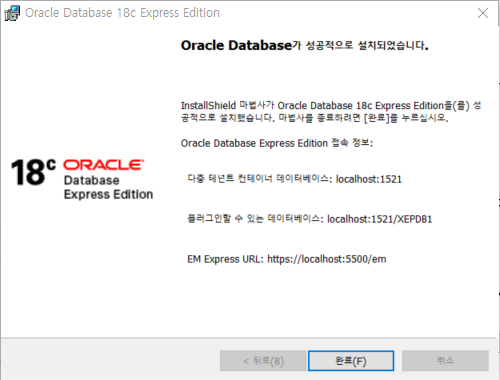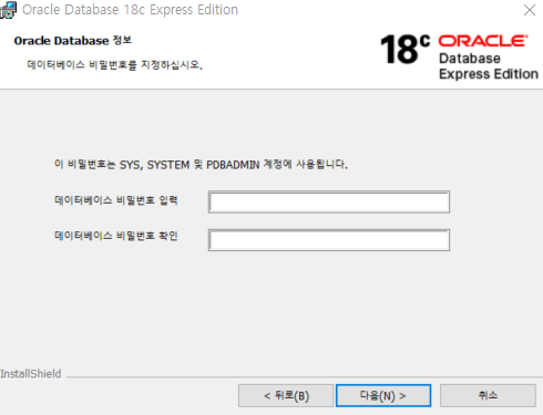 Admin 비밀번호는 꼭 기억하자. (별도 저장) - Ora20210611@18