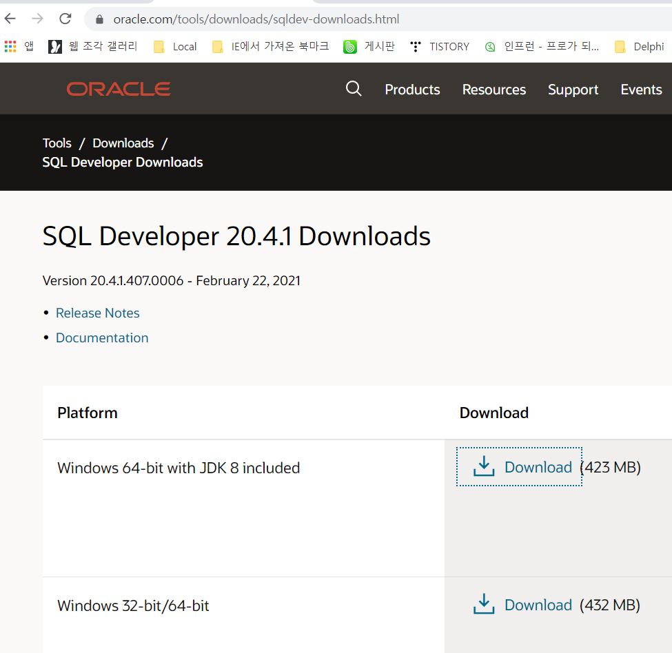 - 최신 sqldeveloper 버전 다운로드