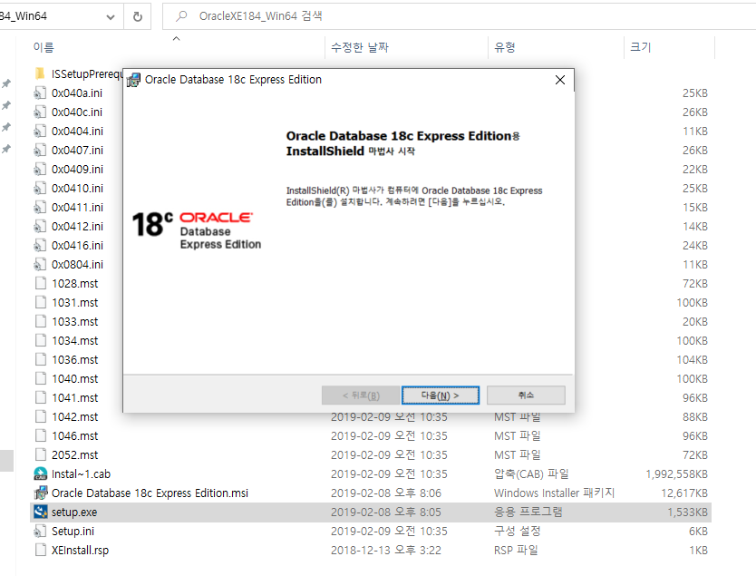 - 다운 받은 파일의 압축을 풀고, setup.exe 실행