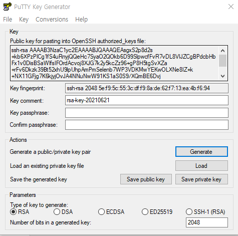 - 소스트리 - 도구 - SSH Key 생성 또는 불러오기