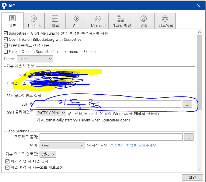 2.1 Private key 등록 : 소스트리 - 도구 - 옵션