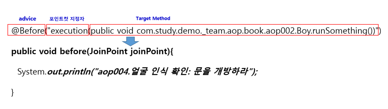 System.out.println("aop004.Boy ===> 실행 전 before MyAspect 실행");