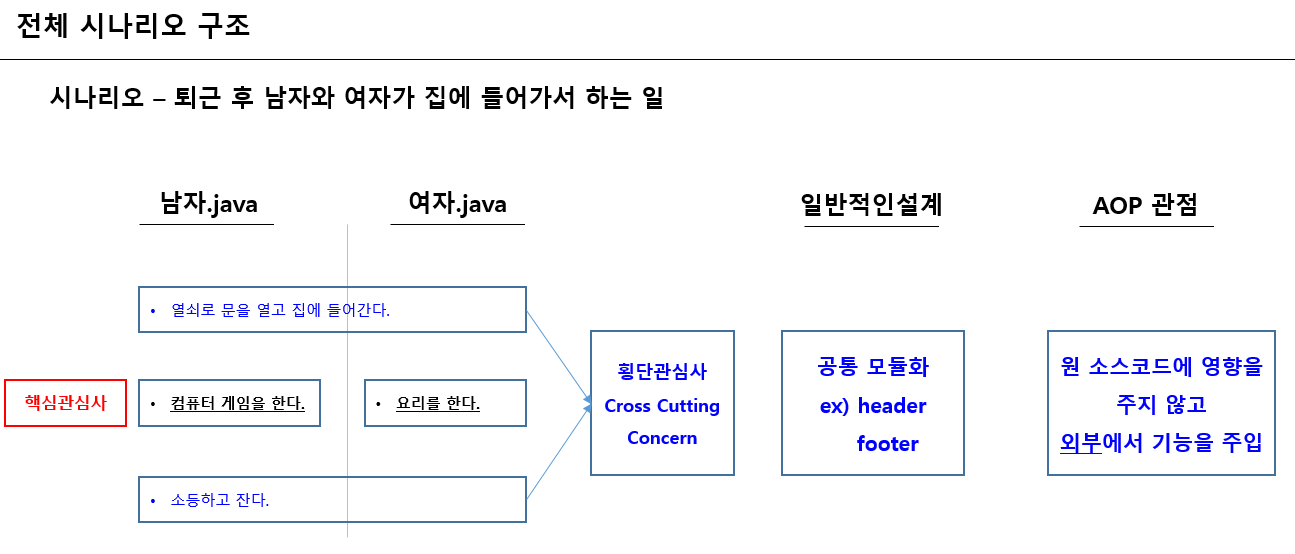남자/여자 동일한 부분을 cross-cutting concerns (횡단 관심사) 라 한다.