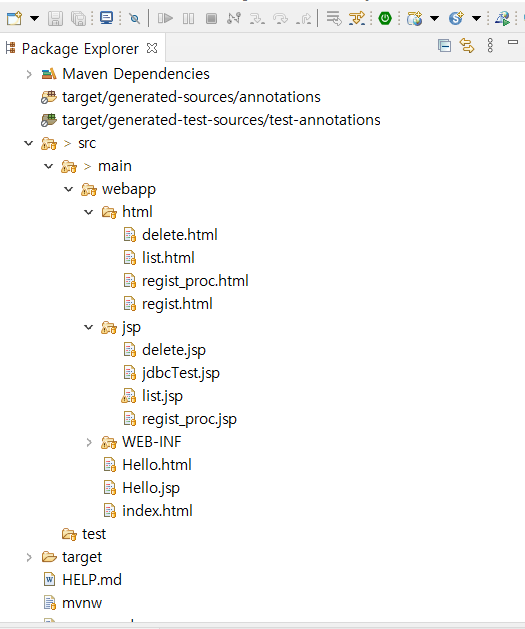 ☞ html, jsp 특히 jdbcTest.jsp 가 정상 작동하는지 확인합니다.