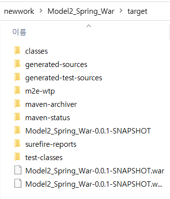 프로젝트를 refresh 하여 target 에 war 파일 생성된것 확인