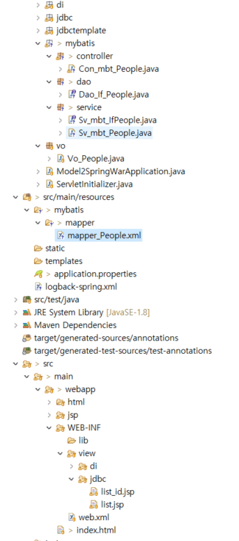 - mybatis 패키지 아래로 controller, service, dao 패키지 추가