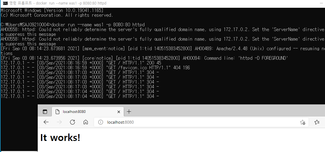 ※ Docker 에서 httpd 의 port 는 80/tcp 로 되어 있음