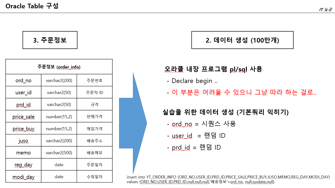 ▶ 주문정보 100만개 생성 스크립트 (PL/SQL)