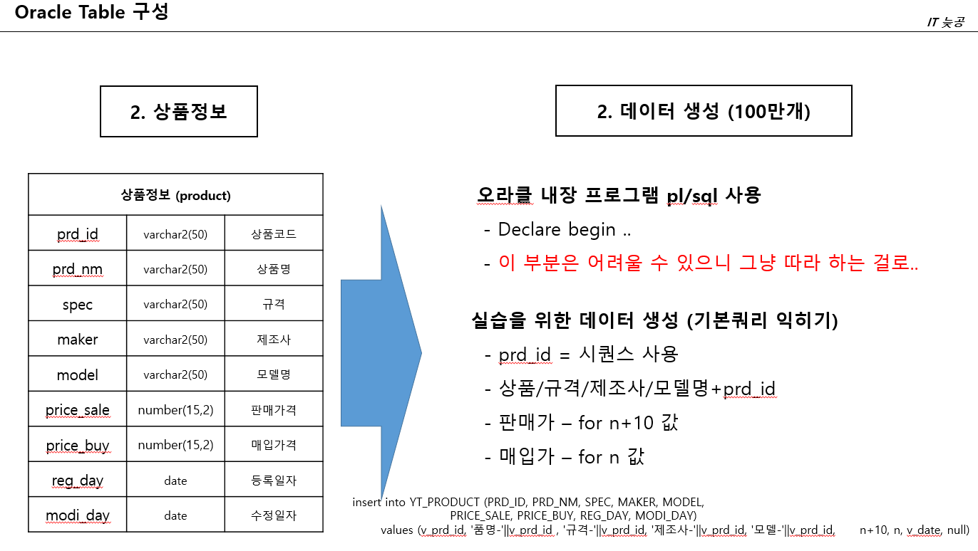 ▶ 상품정보 100만개 생성 스크립트 (PL/SQL)