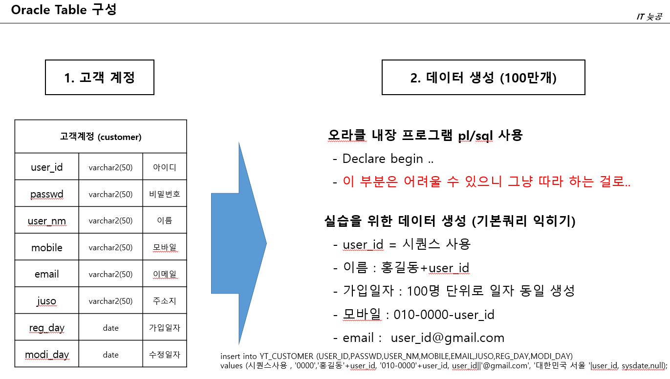 ▶ 고객계정 100만개 생성 스크립트 (PL/SQL)