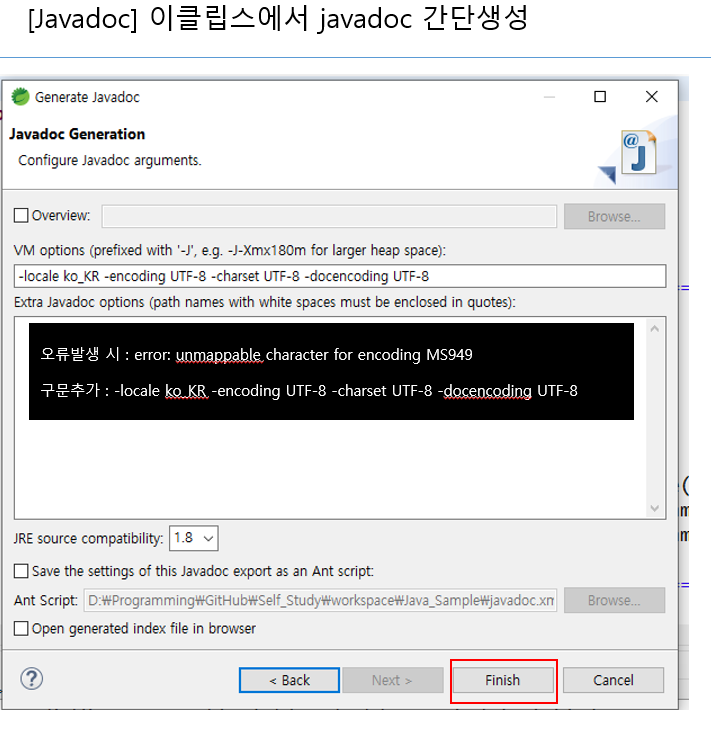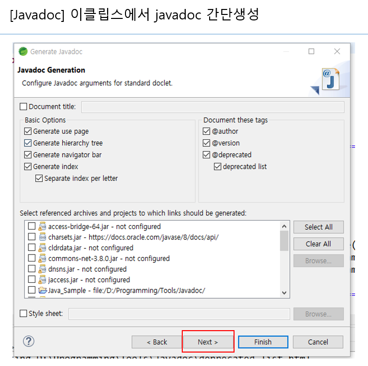 a. 상단메뉴 실행 : Project - Generate javadoc